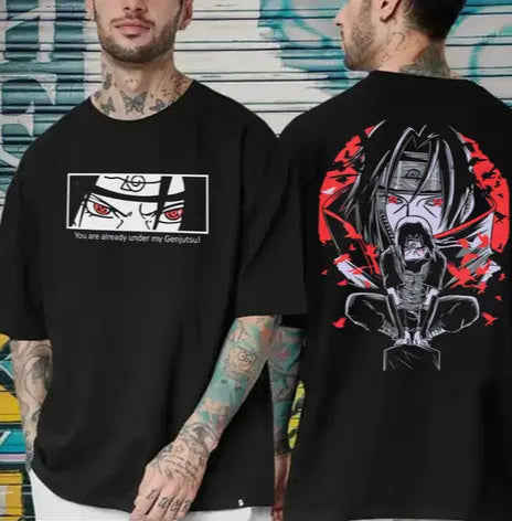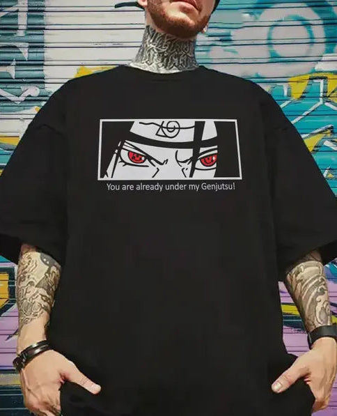 Command attention with the Aura Statement Graphic Top. This striking black oversized tee showcases powerful and intricate graphics, designed to leave a lasting impression. Made from a premium, soft material, it ensures maximum comfort while adding an edgy, artistic touch to your everyday look. Perfect for infusing your style with a unique aura of modern, casual sophistication.
